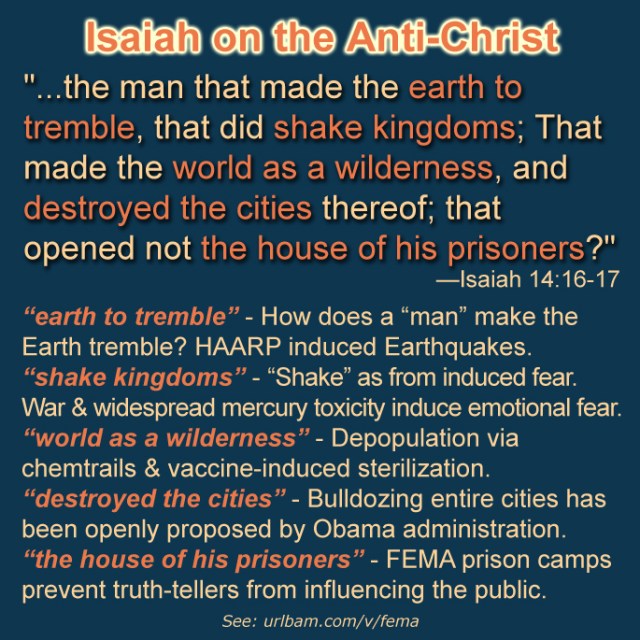 While the word “chemtrails” is not in the Bible, does that mean we can not find a connection? Surely, with what is going today that has never happened in the history of the world, could God have over looked this? Or, would it be of little concern? From what we know about chemtrails, we do know that it is affecting the health of the world. Not only are people getting sick and dying earlier because of this but these heavy metals are affecting animal and plant life. This is Yahweh’s creation and what could be more important that that.