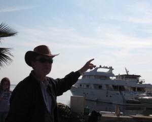 Pointing out chemtrails to denying reporters. Paphos Harbour.