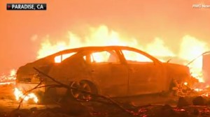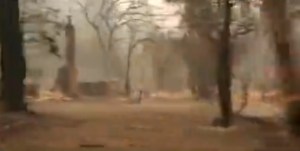 One revealing picture is of cars on a main road that were completely burned. The drivers had obviously had time to pull off to the shoulder of the road and got up. But the fact is, how in the world can cars catch on fire driving down the road where there is a big fire break and the trees you do see have not burned down? How is it that such extreme temperatures are built up where glass and some metal melt that have a melting point higher than what sparks can produce? How can little sparks (if, in deed there were any) burn a car that is travelling down the highway? The answer is, it can’t by ordinary means. It would have to be done by some energy beam weapon that the public is unaware of.