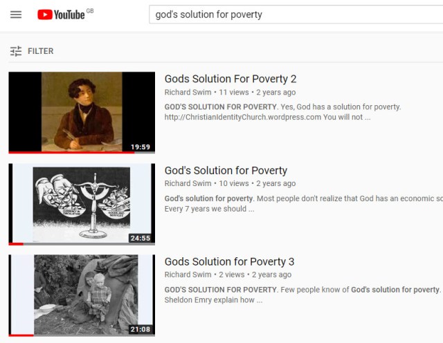 The top three videos on Page 1 in YouTube you’ll find videos in three parts that give the biblical answers for why we have poverty. And sadly to say, these videos have views of 11, 10, and 2 and they have been up for 2 years! There are other videos below that happen to show up with this search and they have Views from a couple of thousand to 700,000. But they are NOT solutions. In other words, the reason why even the average man in the street do not know the REAL solution for poverty is that they are not looking for them! It’s not that these videos are on Page 497 or something like that; they are on Page 1. People either are not even typing in the search words and those that do, look for answers that ‘tickle their ears’ as the Bible says. (The context is, that some people will not endure sound doctrine but rather have their ears tickled. And this surely must be the case.